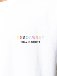 crew neck printed logo T-shirt White cotton crew neck printed logo T-shirt from Readymade featuring a crew neck, short sleeves, a printed logo and a relaxed fit. Imported Composition Cotton 100% SIZE & FIT Model measurements Height 6 ft 2 in(1.87 m) Bust/Chest 38.18 in(97 cm) Hips 36.61 in(93 cm) Waist 29.13 in(74 cm) FittingInformation This piece fits true to size. We recommend you get your regular size Cut for a loose fit Made with a mid-weight fabric Washing instructions Machine Wash
