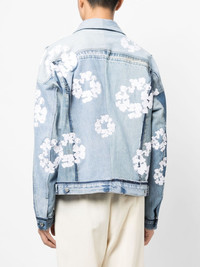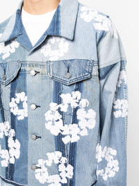 floral-print patchwork denim jacket Highlights - Blue/white - Cotton - Denim patchwork design - Floral print - Notched collar - Front button fastening - Long sleeves - Buttoned cuffs - Two chest flap pockets Imported Composition Cupro 100%, Cotton 100% SIZE & FIT Model measurements Height 6 ft 2 in(1.87 m) Bust/Chest 31.49 in(80 cm) Hips 37.79 in(96 cm) Waist 27.95 in(71 cm) FittingInformation Designed for a boxy fit, intended for a loose fit throughout The adjustable tabs allow for fitted preferences Sturdy and hard-wearing, this denim piece offers no stretch This piece fits true to size – take your usual size Washing instructions Dry Clean Only