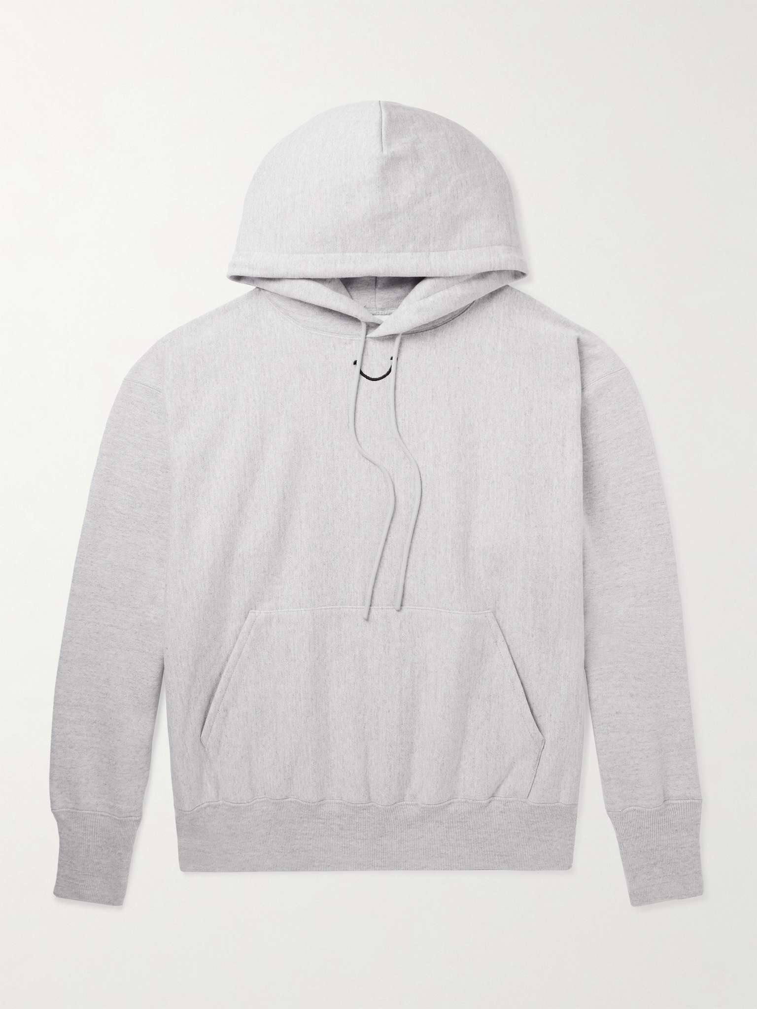 Big music names such as BTS and Jay-Z are among READYMADE's roster of clients. Founded by Yuta Hosokawa, the label uses upcycled fabric, making each piece one of a kind. This hoodie is cut from a soft cotton-blend jersey embroidered with a cheeky smile around the neckline. Wear yours with cargo trousers or track pants. Size & Fit - Model wears a size larger to achieve a looser fit - Mid-weight, non-stretchy fabric - Model is shown wearing a M - Model measures: chest 36"/ 92cm, height 6'2"/ 188cm Details & Care - Grey and black cotton-blend jersey - 89% cotton, 8% polyester, 3% rayon - Machine wash