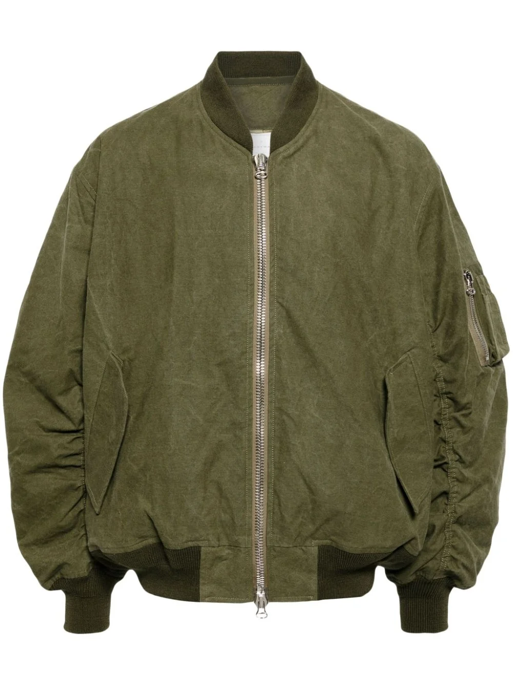 padded canvas bomber jacket Highlights - Khaki - Cotton - Canvas - Padded design - Baseball collar - Front two-way zip fastening - Drop shoulder - Long sleeves - Sleeve zip pocket - Two side welt pockets - Ribbed trim - Straight hem - Quilted lining Imported Composition Vintage Cotton 100% Lining: Polyester 100% Inner: Nylon 100% SIZE & FIT Model measurements Height 6 ft 2 in(1.88 m) Bust/Chest 31.88 in(81 cm) Hips 35.82 in(91 cm) Waist 27.55 in(70 cm) FittingInformation Designed for a relaxed fit, this piece allows for comfort and movement when worn The ribbed hem offers a close, comfortable fit Made from a padded non-stretch fabric, giving it no natural elasticity This piece fits true to size – take your usual size Washing instructions Dry Clean Only
