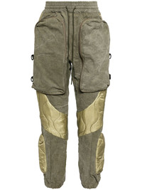 padded cargo trousers Taking its name from Marcel Duchamp's avant-garde approach to art, READYMADE presents handcrafted designs made with upcycled materials from vintage US army gear. These khaki trousers feature swirling quilted panels and multiple cargo pockets that emphasise the utilitarian appeal. Highlights - Khaki - Cotton - Panelled design - Padded design - Quilted panels - Elasticated drawstring waistband - Multiple cargo pockets - Elasticated ankles Imported Composition Vintage Cotton 100% SIZE & FIT Model measurements Height 6 ft 2 in(1.88 m) Bust/Chest 31.88 in(81 cm) Hips 35.82 in(91 cm) Waist 27.55 in(70 cm) FittingInformation Designed for a relaxed tapered leg, allowing a comfortable loose fit above the knee with a closer fit towards the calves Adjust this piece’s waistband to your preference using the drawstring Made from a heavyweight non-stretch fabric This piece fits true to size – take your usual size
