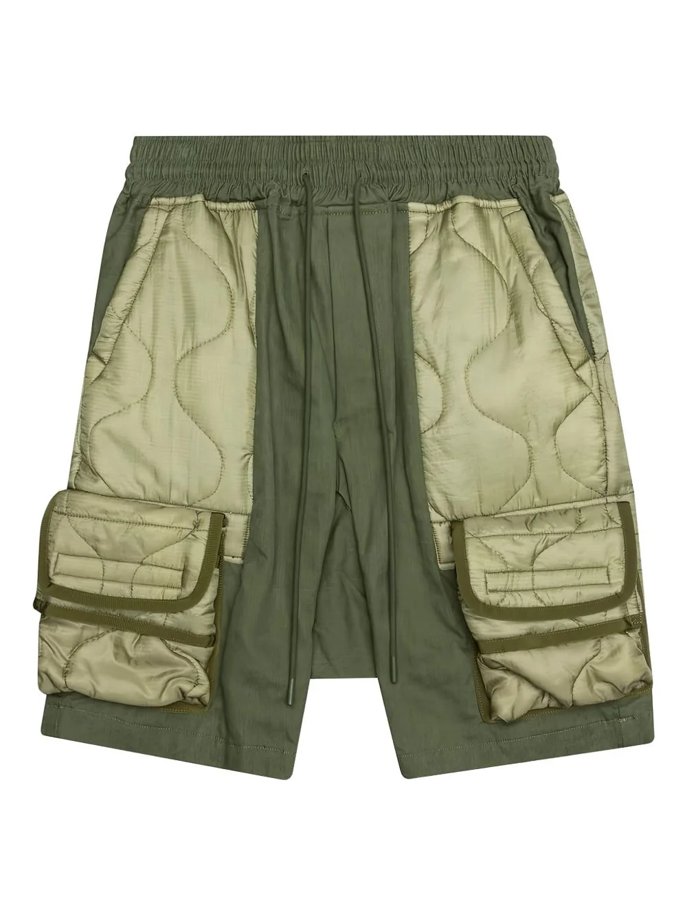 quilted cargo shorts Highlights - Olive green - Quilted panels - Drawstring fastening - Elasticated waistband - Multiple pockets Imported Composition Cotton 100% Washing instructions Read Manufacturer Guidelines