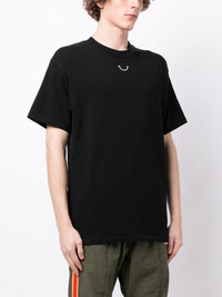 logo-print cotton T-shirt Highlights - Black - Cotton - Graphic print to the front - Logo print to the rear - Drop shoulder - Short sleeves - Straight hem Imported Composition Body: Cotton 100% SIZE & FIT Model measurements Height 6 ft 2 in(1.87 m) Bust/Chest 36.22 in(92 cm) Hips 37.79 in(96 cm) Waist 28.34 in(72 cm) Measurement CHEST 40.15 in(102 cm) SLEEVE LENGTH 16.92 in(43 cm) Shoulder Width 19.68 in(50 cm) FittingInformation Designed for a regular fit allowing for a comfortably loose fit throughout the body Made from a midweight non-stretch fabric, this piece offers minimal elasticity when worn This piece fits large – take one size down