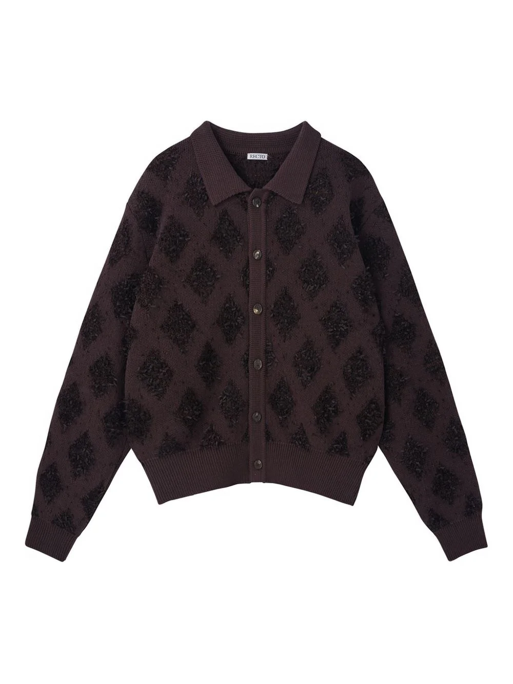 argyle-pattern polo cardigan