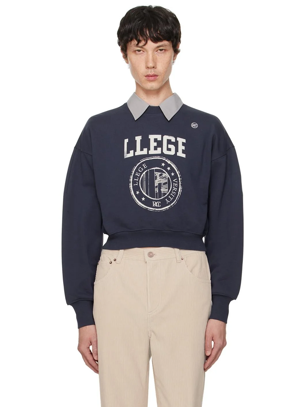 French Terry sweatshirt. · Rib knit crewneck, hem, and cuffs · Logo embroidered at chest · Logo graphic printed at front · Cropped hem · Dropped shoulders Supplier color: Navy 100% cotton. Made in South Korea 242775M204001