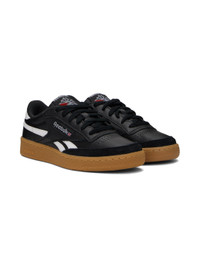 Low-top grained leather sneakers in black and white. · Suede trim at toe · Perforated detailing at vamp · Lace-up closure · Logo patch at padded tongue · Padded collar · Inset logo patch at outer side · Signature stripes at sides · Logo embossed at heel tab · Jersey lining · Textured rubber midsole · Treaded rubber sole Supplier color: Black/White/Gum