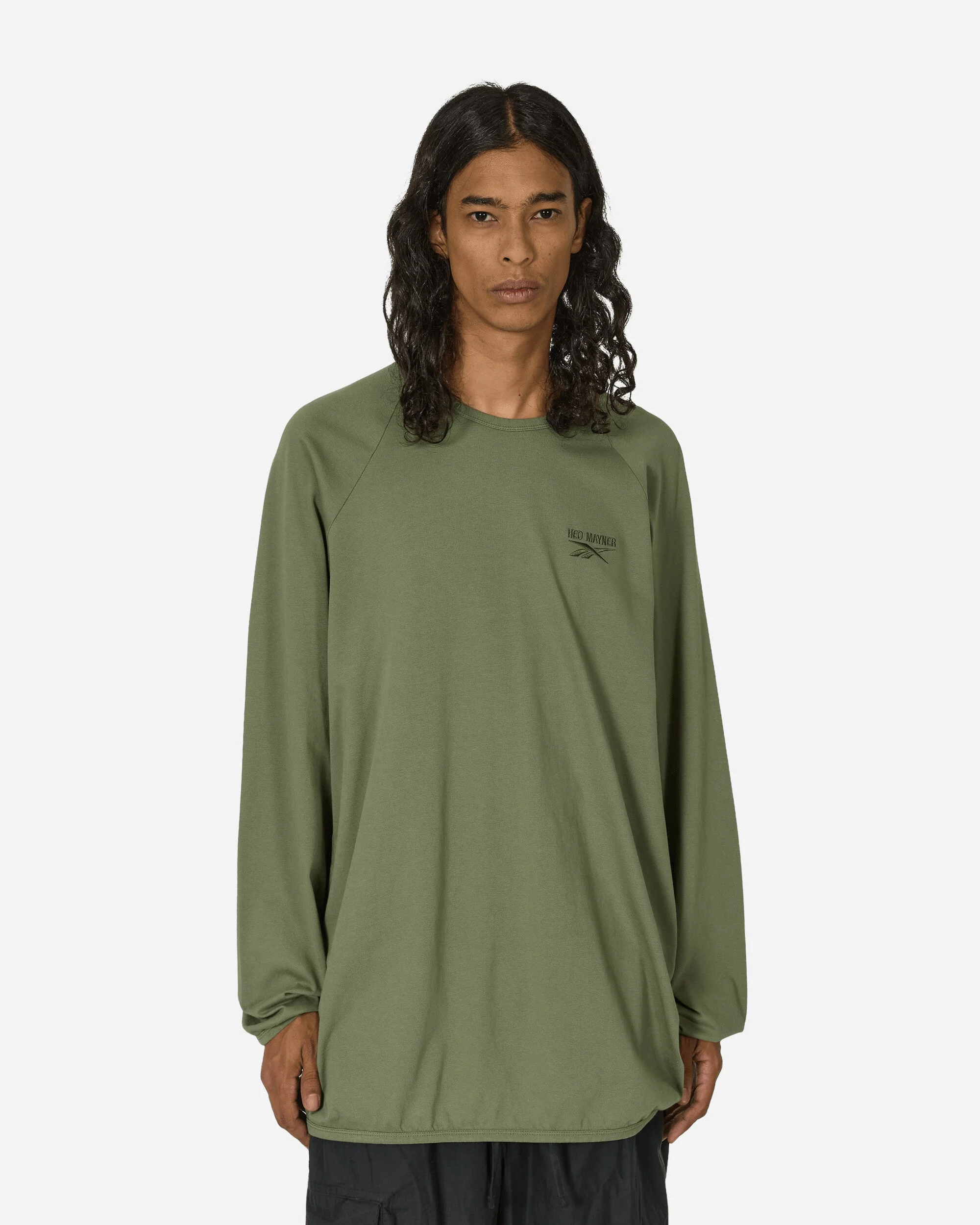 Reebok x Hed Mayner Oversized Raglan Longsleeve T-Shirt Army Green A classic style reworked: this longsleeve tee is crafted from cotton to an exaggerated, oversized silhouette. The raglan sleeve add contrasting drama and security. - 100% Cotton - Raglan Sleeves - Ribbed Collar - Embroidered Logo at Chest - Made in Italy - Style Code: RMAA00BC99JER0015500 SIZE & FIT Model is 6ft 1in/1.86m with 36"/93cm chest and wears size M.