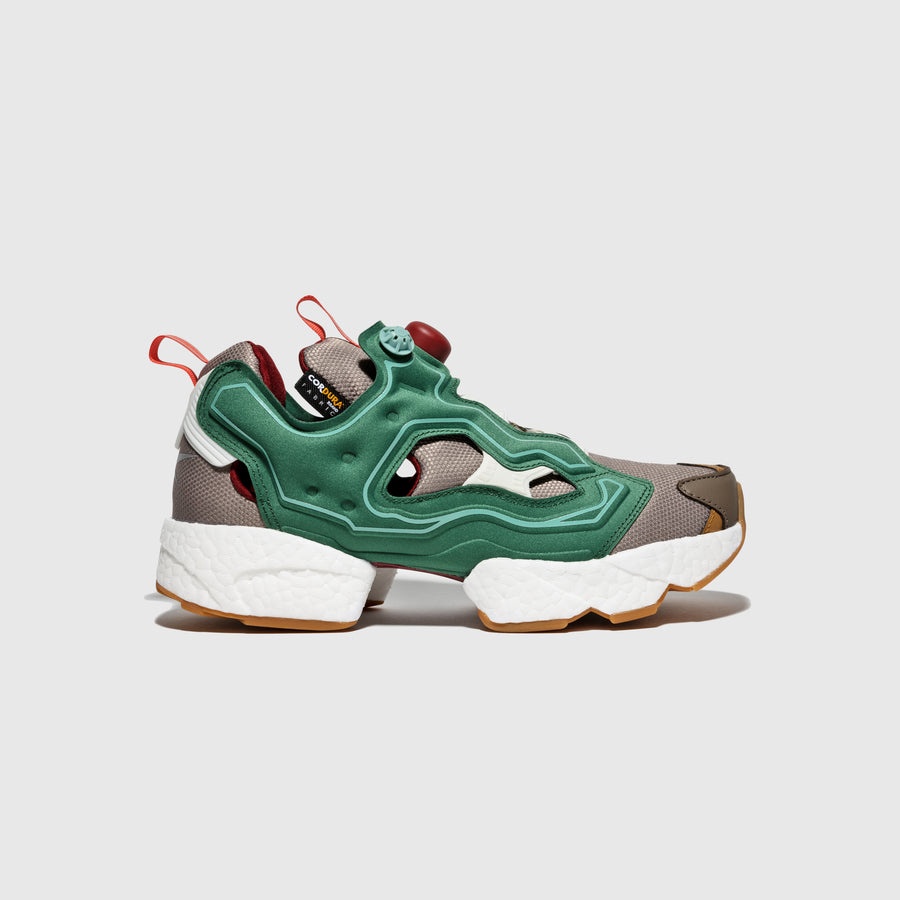 - GZ5363 - Pine Green/Boulder Grey/Triathlon Red - Billionare Boys Club teams up with Reebok to create the Instapump Fury Boost - Cordura fabric upper with synthetic overlays - Pull tab at tongue and heel - Embroidered branding - Boost midsole - Rubber outsole