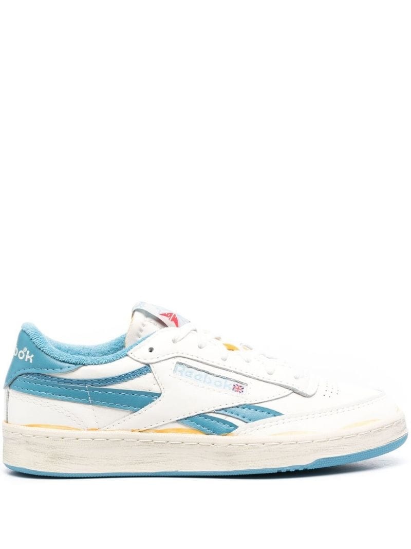 logo-print low-top sneakers logo-print low-top sneakers from REEBOK featuring chalk white, panelled design, logo print to the side, logo print to the rear, logo patch at the tongue, front lace-up fastening, branded insole, round toe, flat rubber sole and calf leather trim. Imported Composition Outer: Calf Leather 100%, Rubber 100% Lining: Fabric 100% Sole: Rubber 100% SIZE & FIT Measurement HEEL 1.4 in(3.5 cm) Sole height 1 in(2.5 cm)