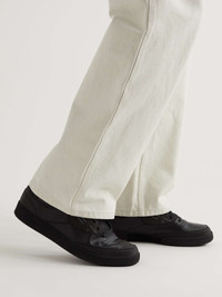 - Black leather (Cow) - Designer emblems, perforated, distressed, rubber soles - Lace up - Style number: GW5012