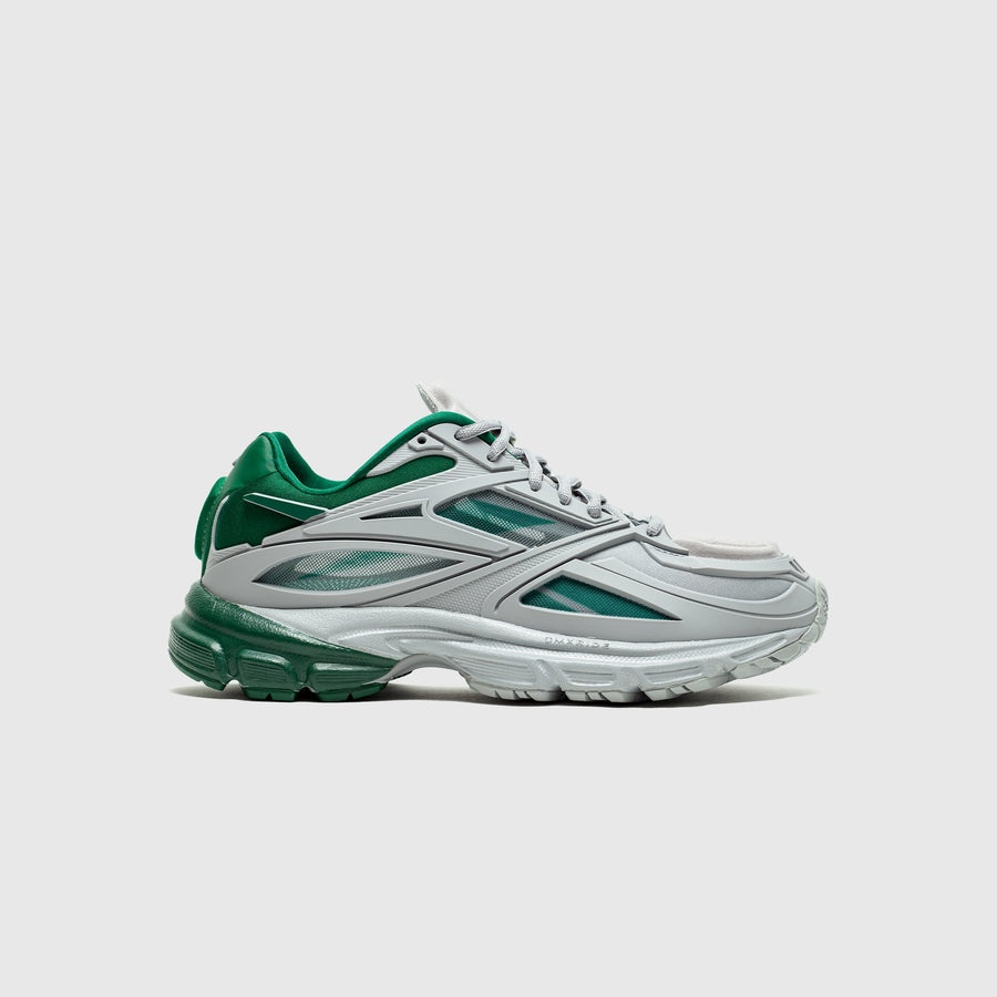 - GX4659 - Pure Grey/Dark Green/Cloud White - Reebok re-invents the 2005 model by incorporating 15 design elements from various Premiere models - Textile upper - Mesh underlays - Foam attributes on tongue, toe, and heel - Lace closure - DMX technology midsole - Rubber outsole