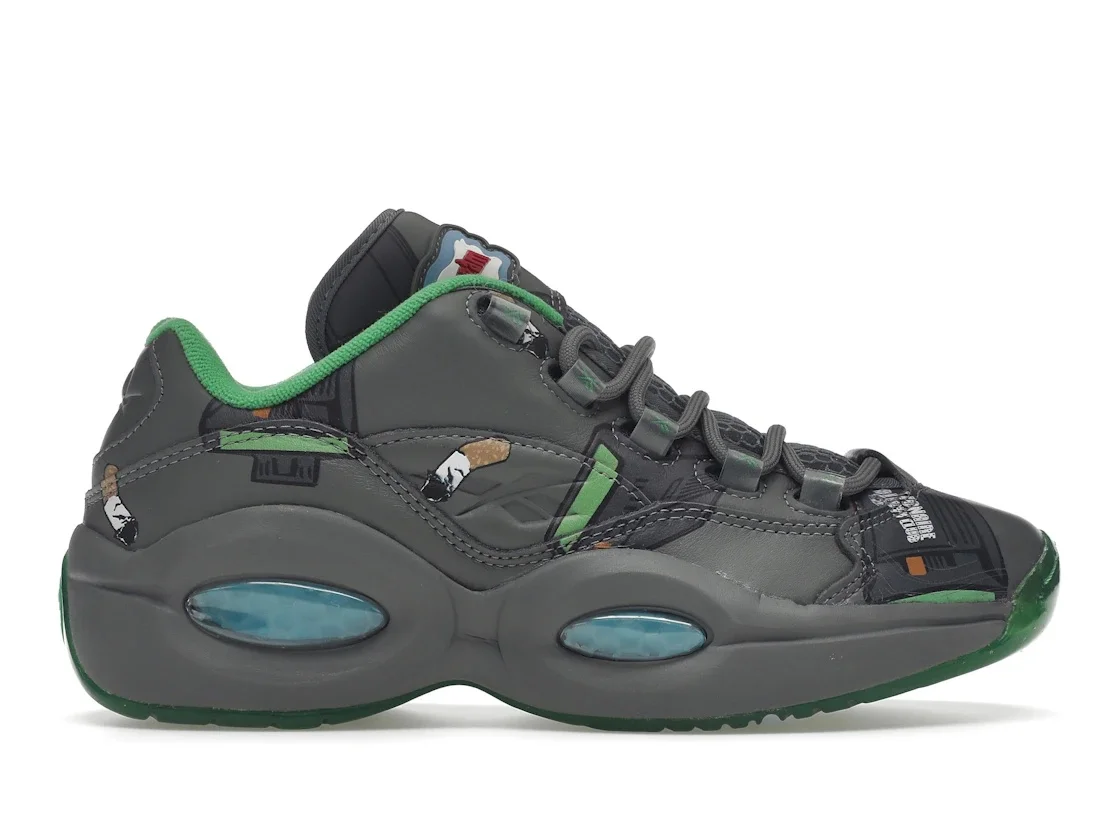 The Reebok Question Low BBC Ice Cream Beepers & Butts is an athletic shoe featuring a True Grey premium leather upper, with a heel collar liner and outsole in Raw Green. The True Grey upper is printed with cigarette butt and pager imagery, accented by Hexalite soft hexagonal cushioning within the midsole in Bright Cyan. BBC Ice Cream branding appears throughout the shoe. The Reebok Question was initially NBA player Allen Iverson’s signature sneaker, redesigned in collaboration with Pharrell Williams’ Billionaire Boys Club and Ice Cream brands. The prints are all over the BBC and ICE CREAM archive, historical prints that the brand designed by taking cues from 1980s nameplate jewelry and 1990s hip-hop. Our experts feel that the best feature of the Question Low BBC Ice Cream is its offbeat and unique printed leather upper. The Question Low BBC Ice Cream Beepers & Butts was released on October 22, 2020, and retailed at $130. - Style FZ4342 - Colorway Grey/Green - Retail Price 130 - Release Date 2020-10-22 - Featured false