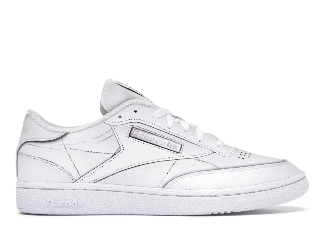 The Reebok Club C Maison Margiela White is a reimagined classic Reebok low-top silhouette inspired by iconic Reeboks from the 80s by Maison Margiela. The Club C Maison Margiela was designed on a white-on-white color platform. The upper is made from white leather panel overlays resulting in a contoured feel. The round-toe design features a vamp with perforations, while the Reebok logo is embossed on the sole and the eyestay in white. A white insole branded in black and white sock lining for the fabric inner. The white textile tongue has a logo patch in white, with the branding done in black. White laces for closure go through punched eyelets. The midsole and outsole are made from rubber and are made in a flat heel design. What do we like about the Reebok Club C Maison Margiela White? StockX experts like the re-imagination of the design yet maintenance of comfort and quality by Reebok. The Maison Margiela Club C was released on March 23, 2021 for $300. - Style H02407 - Colorway White/White/White - Retail Price 300 - Release Date 2021-03-23 - Estimated Retail Price 75 - Featured false