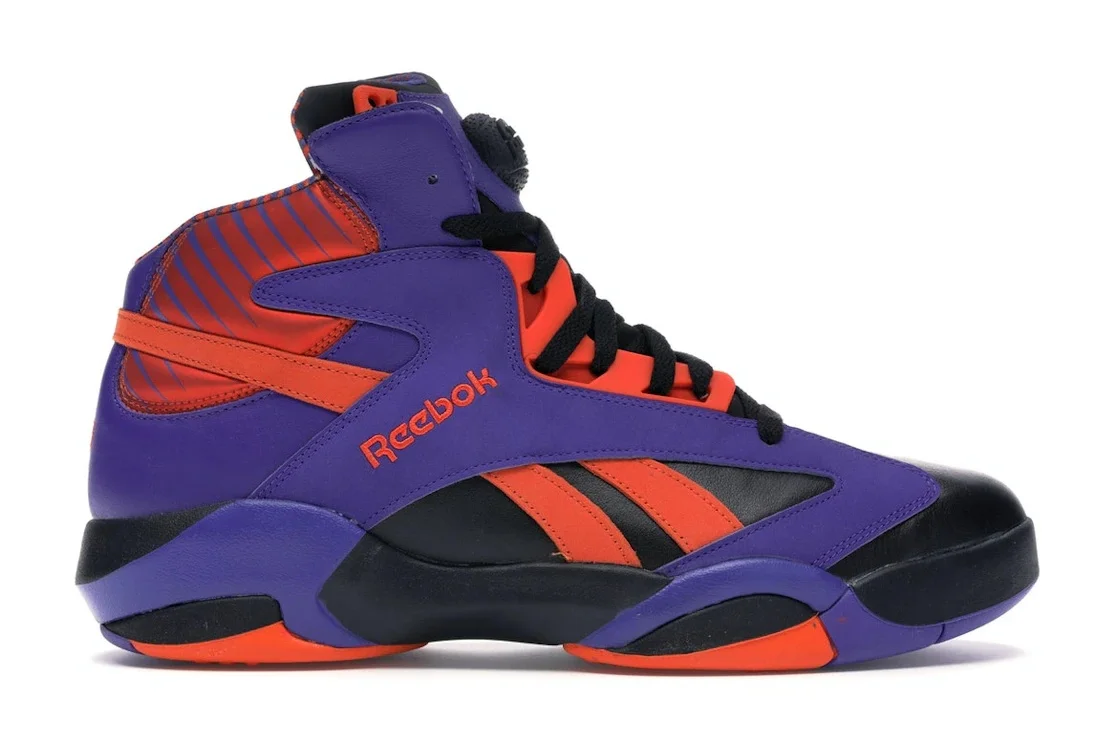The Reebok Shaq Attaq "Big Shaqtus" retro pays homage to Shaquille O’Neal’s days in the desert as a member of the Phoenix Suns. Although Shaq’s era in Phoenix was short-lived, in the year he was there Phoenix hosted the NBA All Star Game and Shaquille O’Neal was voted on to the Western Conference team for his 15th All Star appearance and named co-MVP alongside his former teammate Kobe Bryant. The Big Shaqtus Shaq Attaq was initially nicknamed "Suns" by sneaker blogs due to the obvious Phoenix inspired color combination of black, purple and orange. The Shaq Attaq originally released in 1992 as Shaquille O’Neal’s first signature sneaker. At the time, it debuted Shaq’s personal Dunkman logo on the heel and featured the first Graphlite shank plate ever used on a Reebok basketball shoe. In 2013, the Shaq Attaq returned as a retro for the very first time. A number of colorways released, including new makeups, the classic home and away original color makeups, and of course, the Phoenix Suns inspired "Big Shaqtus" version. Since Shaq is no stranger to nicknames--Diesel, Big Man, Big Shamrock, Big Aristotle, Shaq Daddy, just to name a few--the Reebok Shaq Attaq "Big Shaqtus" uses one of his many to tie the colorway together with O’Neal and his history making career. 1821 ea83b082-220d-45ef-bb1f-86afeb94c41a <b>Please Note: due to natural aging, deadstock pairs may come a functioning pump unit.<b> - Style V61029 - Colorway Black/Purple-Orange - Retail Price 160 - Release Date 2013-10-04 - Featured false