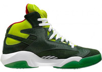 Christmas inspired sneakers have become the standard for holidays and in 2013 Reebok went big the Reebok Shaq Attaq "Ghost of Christmas Present" colorway. The Reebok "Ghosts of Christmas" Pack featured three of Reebok’s classic basketball sneakers. The Reebok Question, Reebok Kamikaze II, and Shaquille O’Neal’s first sneaker, the Reebok Shaq Attaq. The colorways are inspired by the Charles Dickenson classic, A Christmas Carol, which is the story of Ebenezer Scrooge being visited by three ghosts. In the story, the Ghost of Christmas Present wears a dark green robe, which is the basis for this Shaq Attaq colorway. In addition to the dark green upper, the Shaq Attaq features a red inner lining and neon green patent on the tongue and collar. The iconic Reebok Pump ball on the tongue comes in a rubberized neon green finish. With the official colorway of Green/Green/White-Red the Ghost of Christmas Present Shaq Attaq appropriately represents both the big fella from the story and The Big Fella, Shaquille O’Neal on this remake of Shaq’s first signature sneaker. The Shaq Attaq originally released in 1992 in two colorways but with its return as a retro in 2013, Reebok got much more creative with their designs and the Reebok Shaq Attaq "Ghosts of Christmas Present" is proof. 1821 ea83b082-220d-45ef-bb1f-86afeb94c41a <b>Please Note: due to natural aging, deadstock pairs may come a functioning pump unit.<b> - Style V61428 - Colorway Green/Green-White-Red - Retail Price 160 - Release Date 2013-12-20 - Featured false