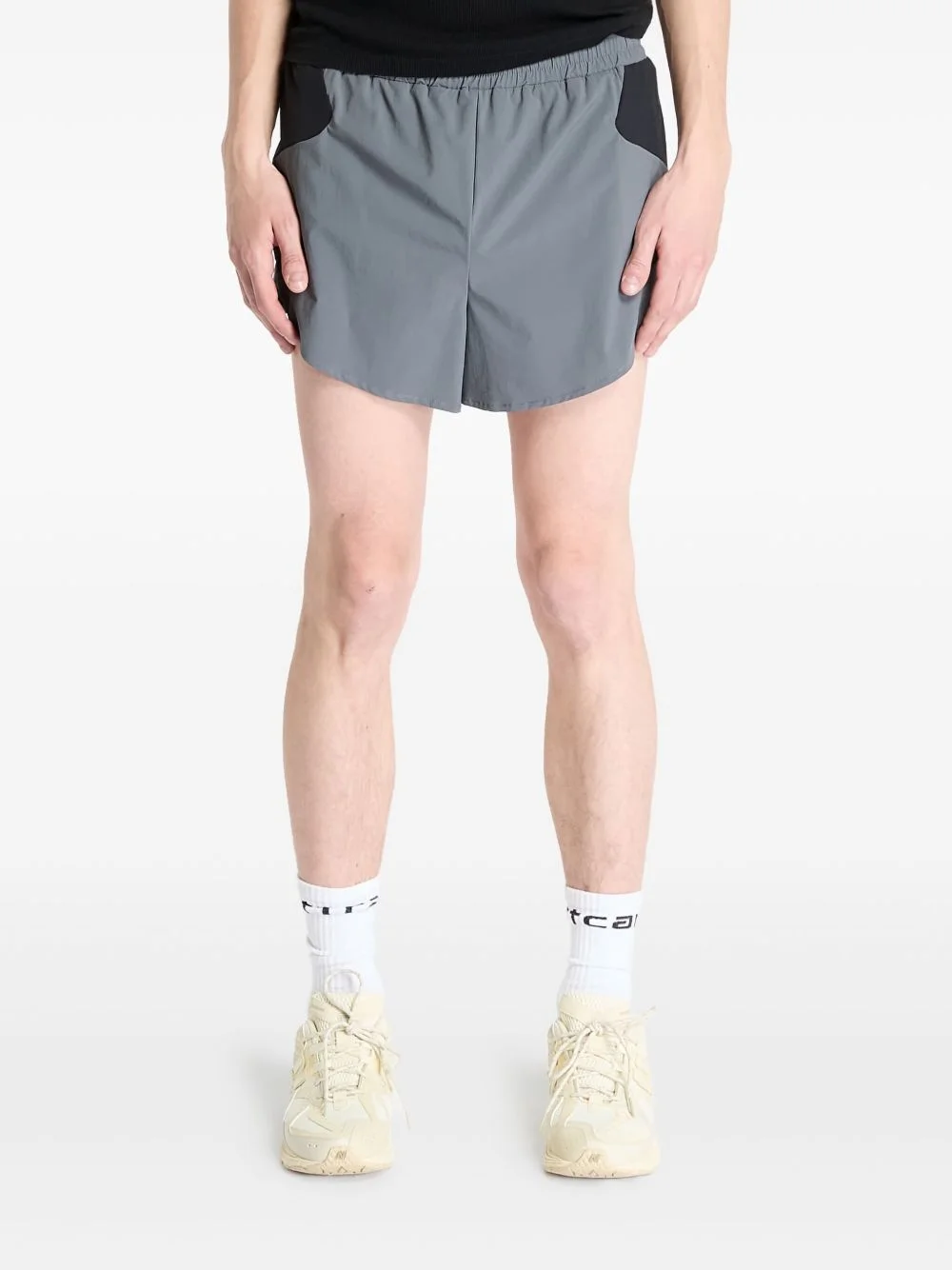 Run shorts Highlights - Beluga grey - Elasticated waistband - Rear zip-fastening pocket - Side slits Imported Composition Outer: Polyamide 86%, Elastane 14% Lining: Polyester 100% Washing instructions Machine Wash