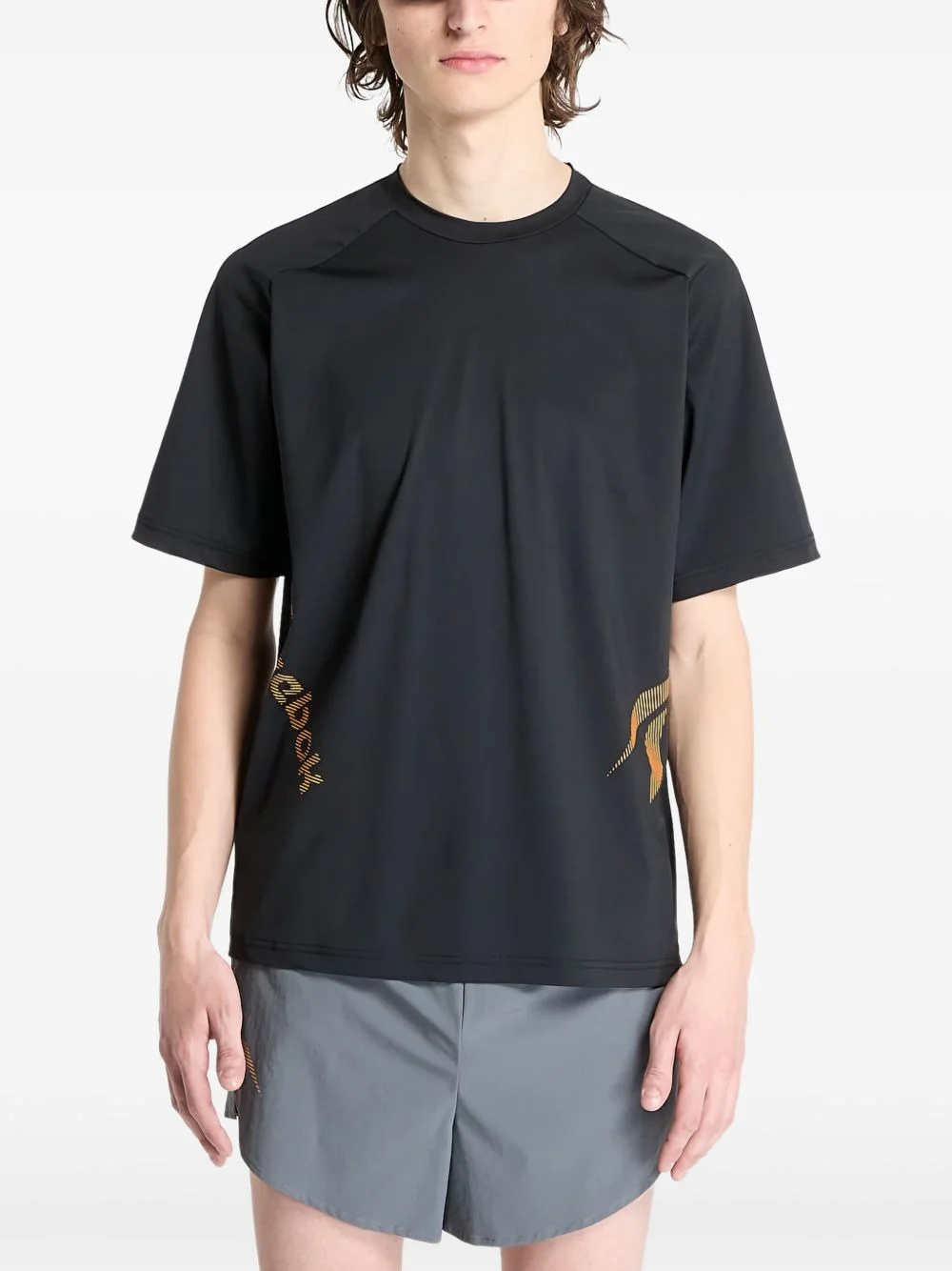 UNIFORM Running Tee Highlights - Black - Crew neck - Short sleeves - Contrasting trim - Logo stamp at side Imported Composition Polyamide 75%, Spandex/Elastane 25% Washing instructions Dry Clean Only
