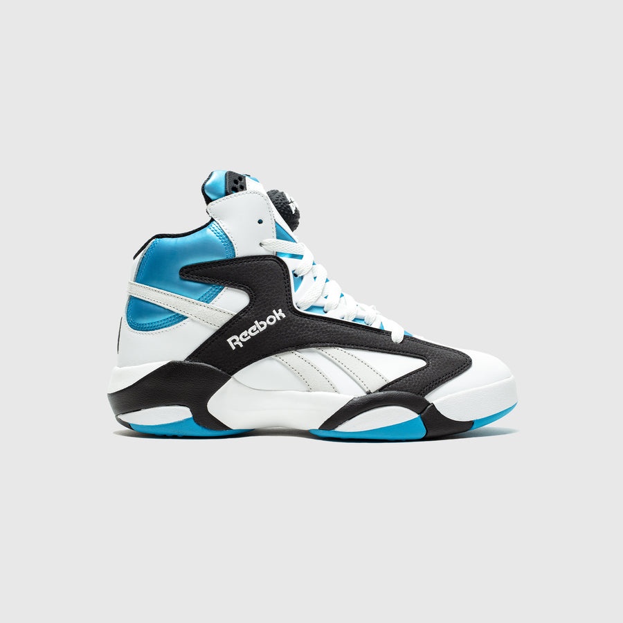 - GX3881 - FtwWht/CBlack/Azure - Reebok celebrates 30 years since the original 1992 with the official return of the Shaq Attaq - Leather and synthetic upper - Lace closure - The Pump customizable fit - Textile lining - Rubber outsole
