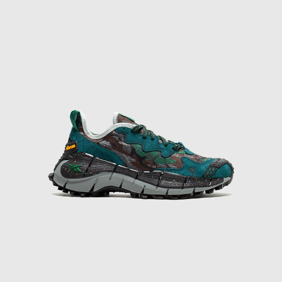 - FZ5857 - CloGrn/CdGry/CBlack - Reebok collaborates with the fly fishing-inspired Japanese brand South2 West8 for a new take on theZig Kinetica II Edge - Suede upper with synthetic overlays - Camouflage pattern - Mesh Tongue with Woven Label - Lace closure - Floatride Fuel midsole - Vibram Ecostep rubber outsole