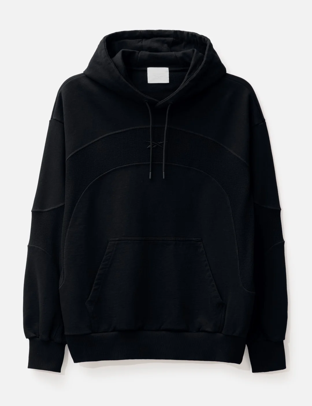 - Reebok - Waffle Pattern Hoodie - Hood with drawstring - Paneled design - Logo embroideries on chest and above back hem - Ribbed cuffs and hem - Kangaroo pocket - Color: Black - Material: 100% Cotton - See more Hoodies and Clothing SIZING Men - Model wears size L - Model measures: Height 187cm, Chest 36”/91cm, Waist 29”/74cm, Hip 37”/94cm - Model wears size S - Model measures: Height 178cm, Chest 33”/84cm, Waist 24’’/61cm, Hip 36’’/91cm