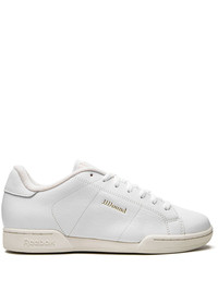x JJJJound NPC II sneakers The Reebok x JJJound NPC II sneakers feature a minimal design made of full-grain leather, highlighted with a logo print on the sides. This pair is constructed with a soft terry cloth lining and sits atop a rubber sole. Imported Composition Leather 100%
