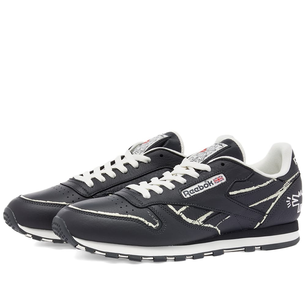 In honour of American pop artist Keith Haring, Reebok dedicates this version of the iconic Classic Leathers to his work, specifically the Barking Dog. The slick black leather uppers have chalk-like detailing along the seams and feature Haring’s funky canine embroidered on the back, while a high-traction rubber sole sits underfoot. - Leather Uppers - Rubber Outsole