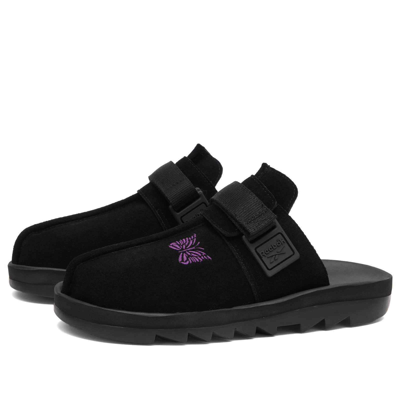 Join the beat generation with the Beatnik Sandals from Reebok x Needles. This slip-on style is crafted from soft suede with a round toe. The velcro strap provides a custom fit while the moulded footbed offers support and comfort. The signature Needles butterfly is embroidered on the vamp, a touch of colour that stands out - much like the Beatniks of the 20th Century. - Suede Uppers - Treaded Rubber Soles - Moulded Footbed - Velcro Strap - Branded Reebok Buckle - Embroidered Needles Butterfly Motif