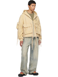 Cotton corduroy jacket. · Detachable flap pockets with self-tie fastenings throughout · Drawstring at hood · Two-way zip closure · Logo-engraved clasp at chest · Seam pockets · Raglan sleeves · Logo patch at cuff · Elasticized cuffs Supplier color: Khaki 100% cotton. Made in United States 252115M180005