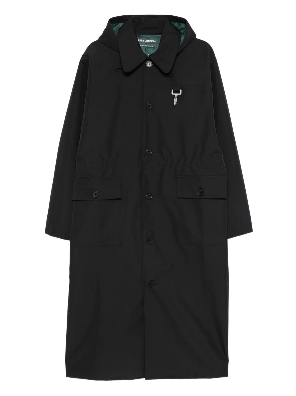 flap-pocket hooded raincoat Highlights Made in United States Composition Outer: Nylon 100% Lining: Rayon 100% SIZE & FIT Model measurements Height 6 ft 0 in(1.84 m) Bust/Chest 35.82 in(91 cm) Hips 37 in(94 cm) Waist 28.34 in(72 cm)