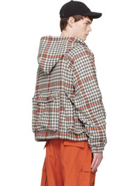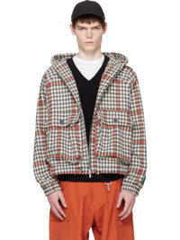 Grau & Orange Wool Houndstooth Hooded Cargo Jacket
