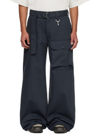 Navy Cotton Twill Patch Pocket Belted Trousers