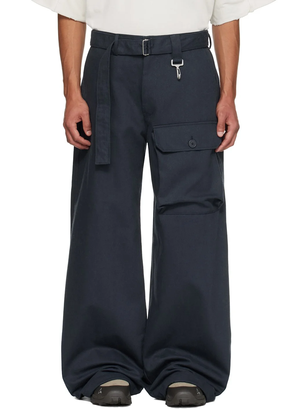 Heavyweight cotton twill trousers · Wide-leg · Belt loops · Detachable REESE COOPER HOOK SYSTEM® belt · Four-pocket styling · Zip fly · Loop and logo-engraved carabiner at front waist · Patch pocket at leg Supplier color: Navy 100% cotton. Made in United States 252115M191003
