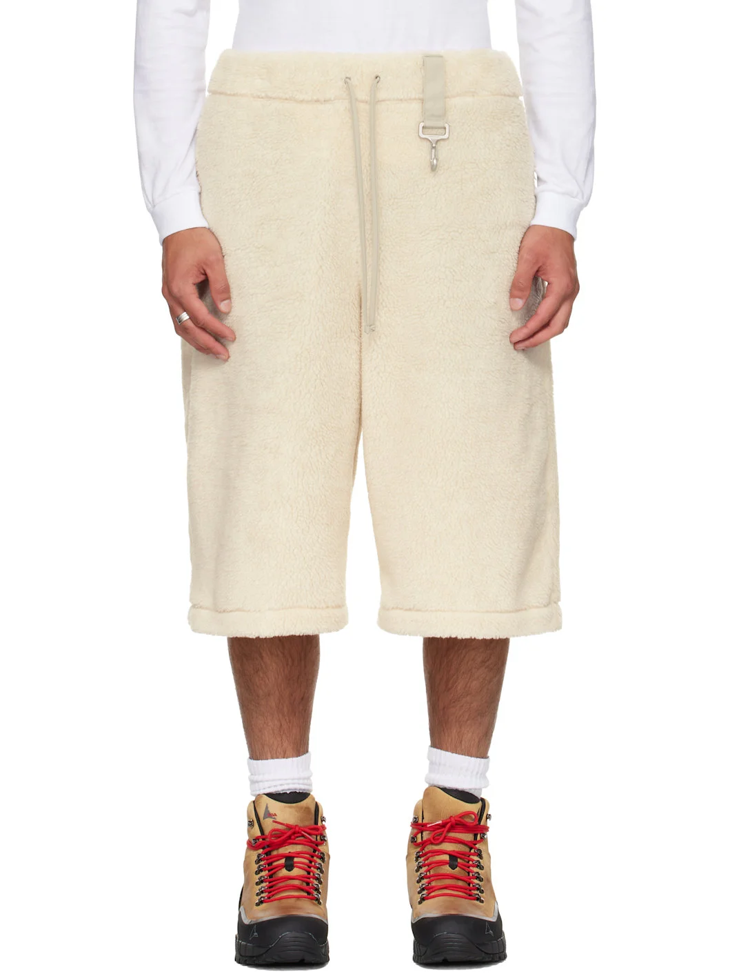 Sherpa fleece shorts. · Heavyweight · Drawstring at elasticized waistband · Four-pocket styling · Logo-engraved clasp at front Supplier color: Cream Body: 100% polyester. Trim: 100% polyester. Made in United States 252115M193001