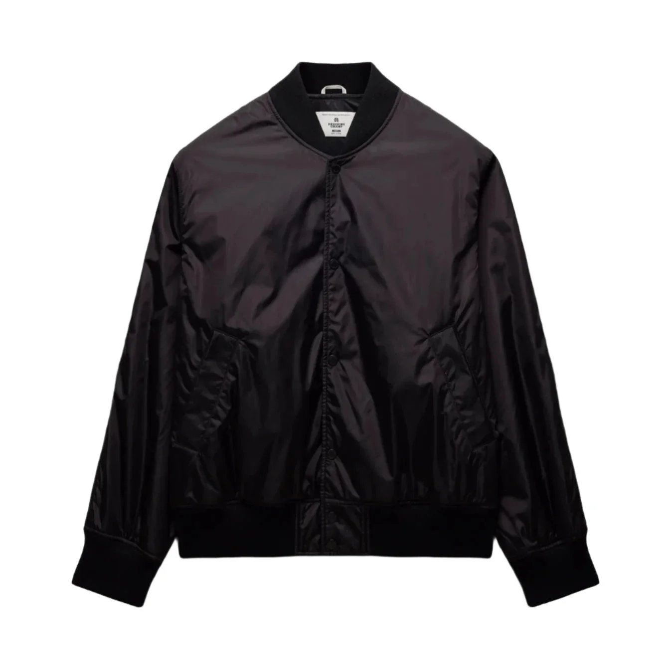 This matte satin stadium jacket is crafted from Econyl regenerated nylon with a durable water-repellent finish. Featuring a standard fit with full-cut torso and sleeves, and PrimaLoft insulation for lightweight warmth. Designed with tonal metal snap closure, semi-raglan sleeves, slanted welt pockets, an interior chest pocket, and a rib collar, cuffs and hem. - PFC-free durable water repellent finish - 60g PrimaLoft® insulation - 24L metal snaps - Semi-raglan sleeves - Slanted welt pockets - Interior chest pocket - Rib collar, cuffs and hem - Standard fit