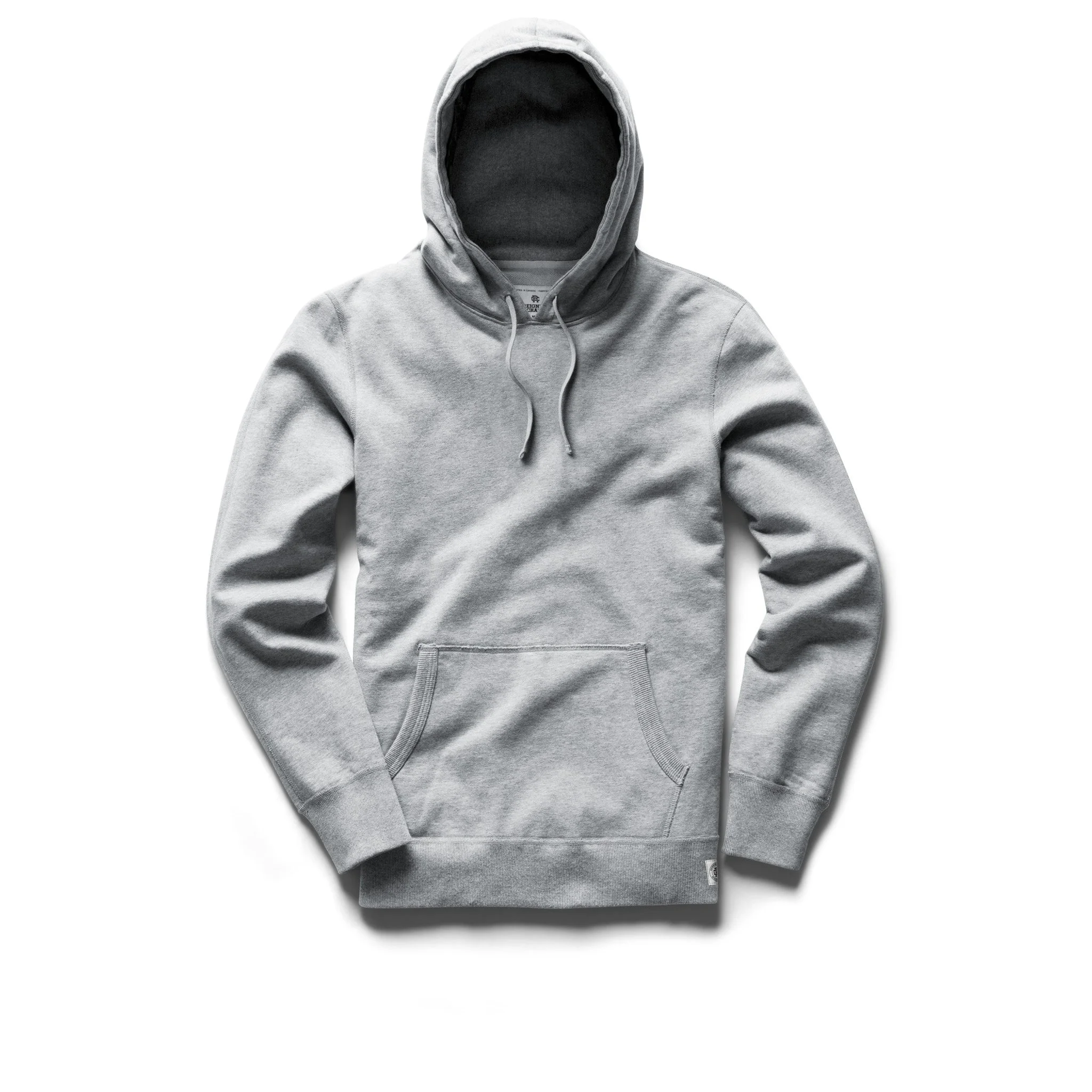 Reigning Champ's versatile hoodie handcrafted from Lightweight Terry, a premium cotton fabric developed for mild climates and precise layering. Designed with a dual-layer hood, rib side panels, semi-raglan sleeves, front pouch pocket, and a trim athletic fit. - RC-3529 - 100% cotton French Terry - Flatlock seams - Semi-raglan sleeves - Rib-lined hood - Rib side panels - Rib cuffs and hem - Rib-bound front pocket - Woven drawcord - Taped collar seam - Handcrafted in Canada