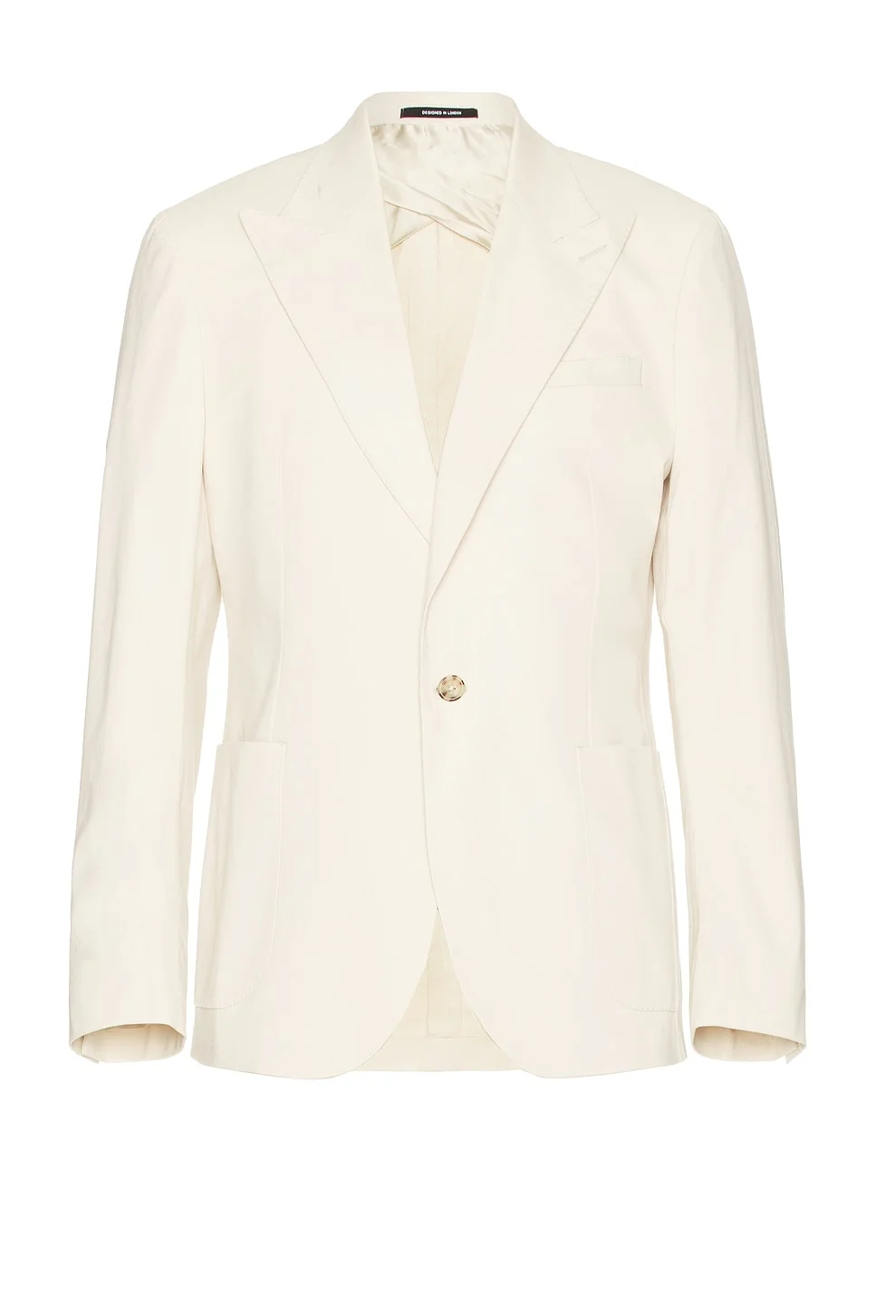 - Self: 97% cotton 3% elastane Lining: 100% viscose - Dry clean only - Singular front button closure - Lightly padded shoulders - Button cuffs.3-pocket design - Midweight twill fabric - Revolve Style No. RISS-MO3 - Manufacturer Style No. 11710504