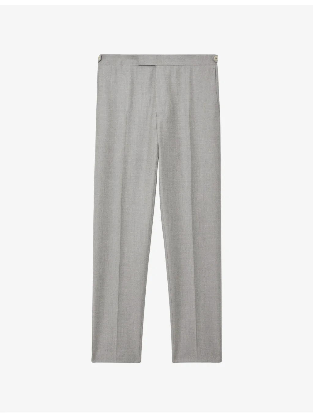 PRODUCT DETAILS - Reiss wool trousers - 100% wool - Button, hook-and-eye and zip-fly fastening - Regular fit, pockets and adjuster fastening at the side, straight leg - Dry clean - Midweight, non-stretch Ref: R04486128