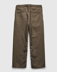 The Ester Tweed Pants from Remi Relief are crafted from a specially processed poly tweed fabric that mimics the qualities of a fine, soft-touch wool. With a lofty medium-weight, Remi's specially processed fabric lends itself perfectly to a fall-weather staple. Cut in a relaxed straight leg fit, the pants are finished with a brass zip fly, pockets at the waist and rear, and an inner drawstring waistband. - Regular rise, straight leg fit - Special processed poly tweed fabric - Drawstring waistband - Brass zip fly - Two slant pockets at waist - Rear welt pockets - Bartack reinforcements - 100% polyester - Made in Japan