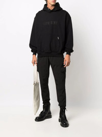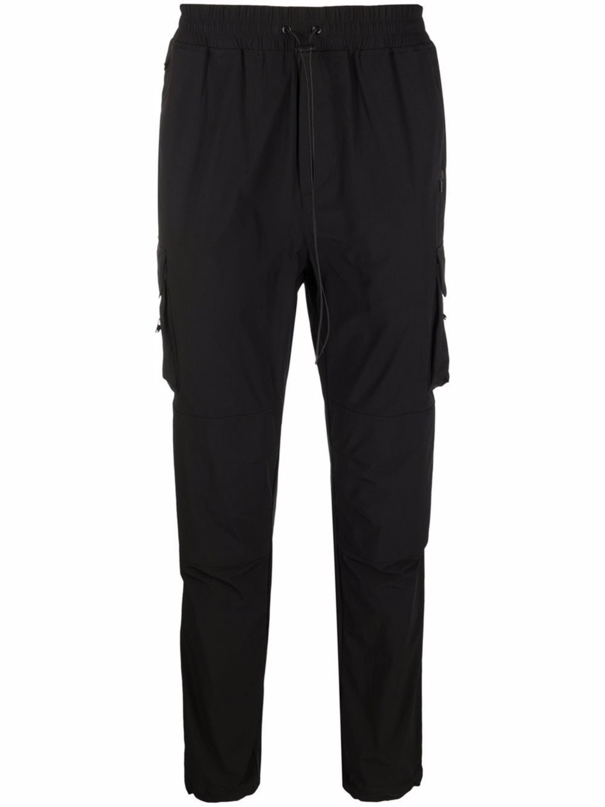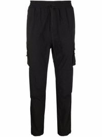 black front toggle fastening elasticated ankles elasticated toggle detailing two side cargo pockets front zip fastening pockets Size & Fit Model Measurements: Height: 1.88 m Bust/Chest: 90 cm Hips: 87 cm Waist: 68 cm Model wears size M Fabric and Care Designer Style ID: M08087 Designer Colour: 01 BLK Composition: Spandex/elastane 13%, Nylon 87% Washing instructions: Machine Wash