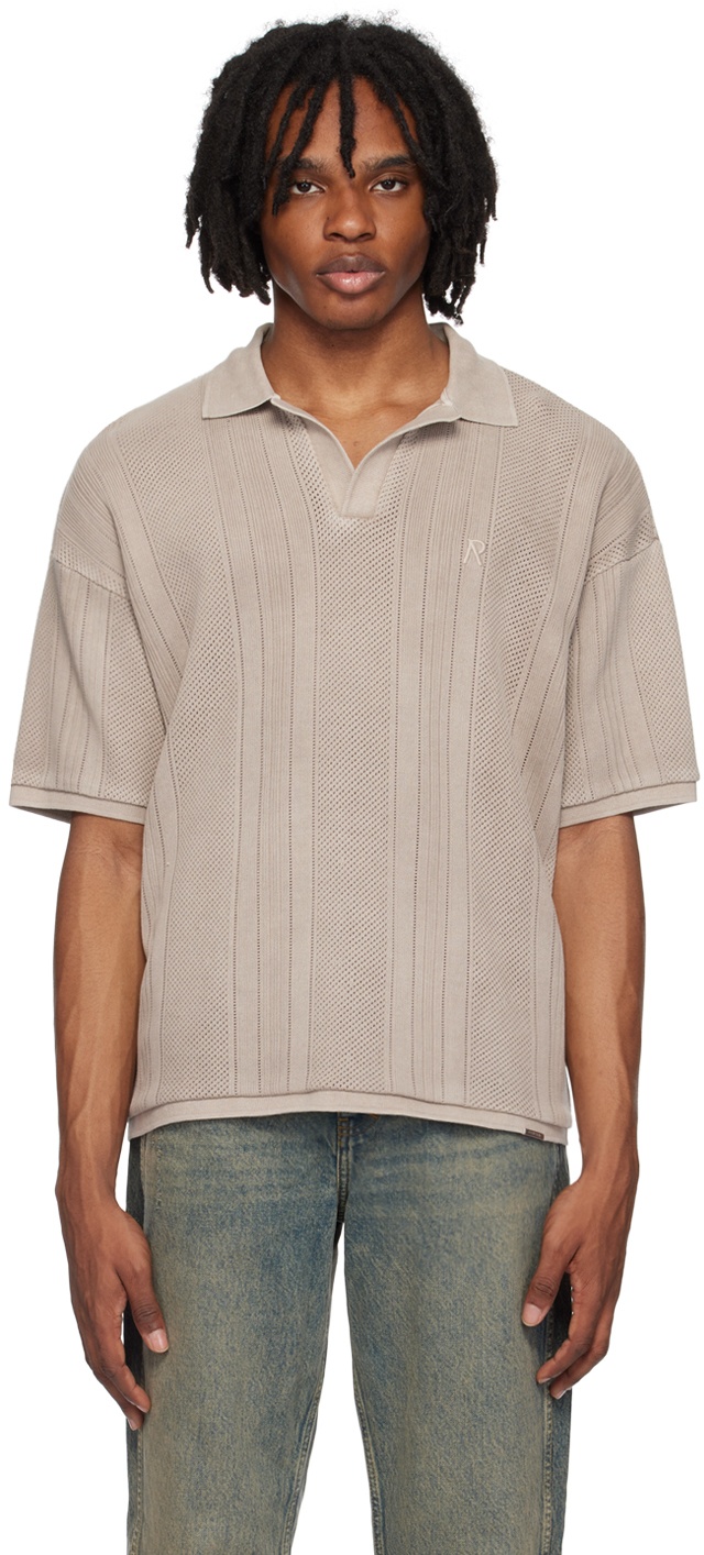 Open knit cotton polo. · Rib knit open spread collar, hem, and cuffs · Logo embroidered at chest · Logo plaque at hem · Dropped shoulders Supplier color: Cashmere 100% cotton. Made in Portugal 241655M212000