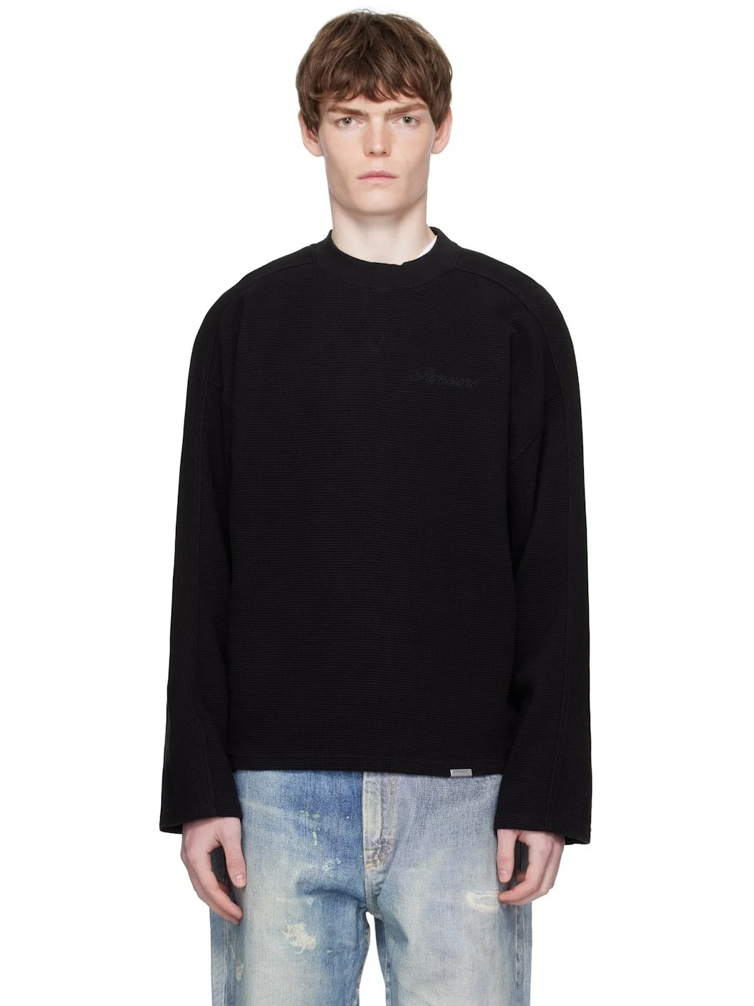 Waffle-knit stretch cotton T-shirt. · Rib-knit crewneck · Logo embroidered at chest · Logo hardware at front hem · Yoke sleeves Supplier color: Black Body: 100% cotton. Trim: 96% cotton, 4% elastane. Made in Portugal 252655M213002