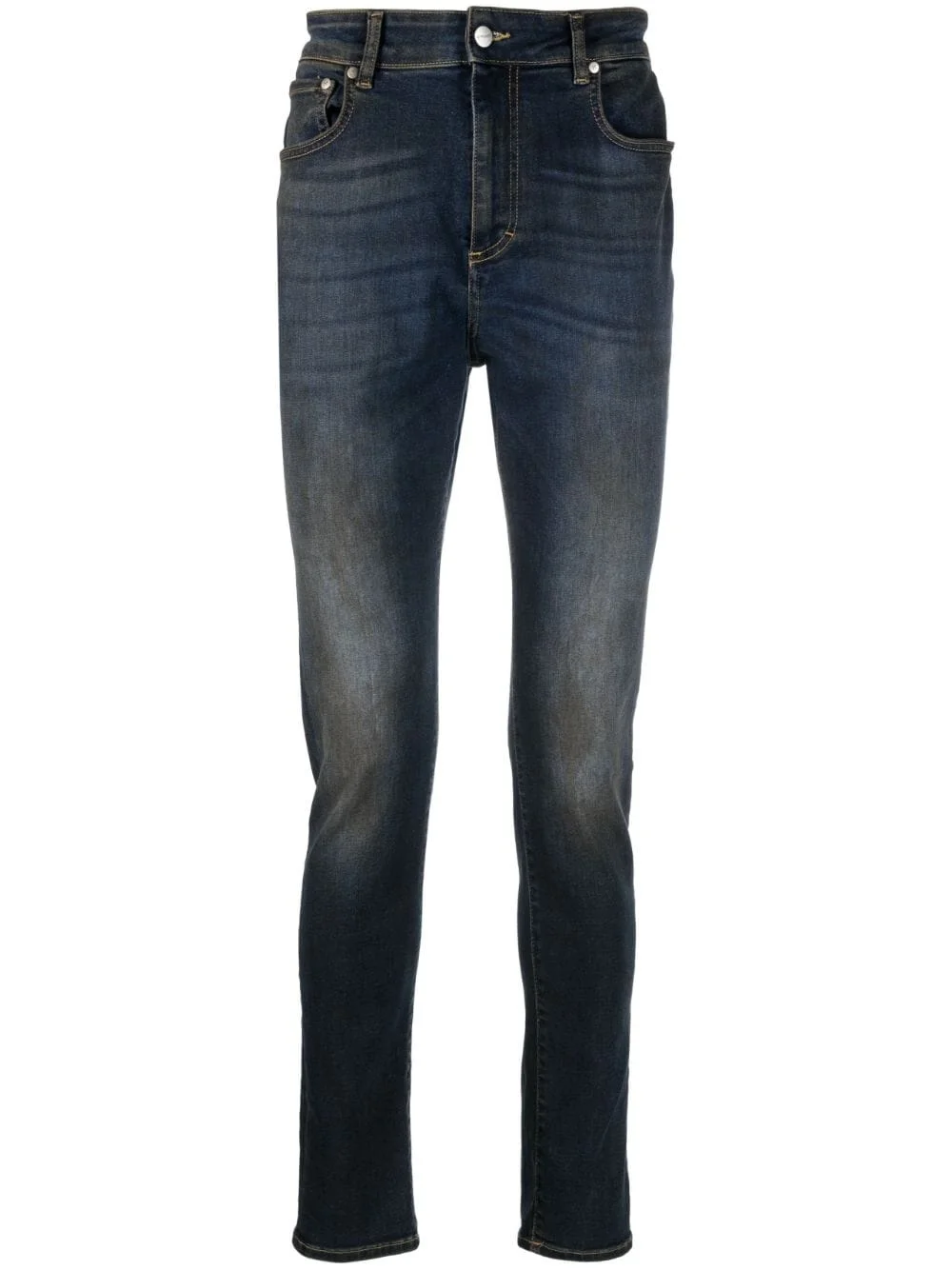faded-effect skinny jeans Highlights - Studio blue - Denim - Stretch-cotton - Logo patch to the rear - Faded effect - Classic five pockets - Belt loops - Front button and zip fastening - Skinny cut - Full-length Imported Composition Cotton 89%, Polyester 9%, Spandex/Elastane 2% SIZE & FIT Model measurements Height 6 ft 1 in(1.85 m) Bust/Chest 35.82 in(91 cm) Hips 37.79 in(96 cm) Waist 29.13 in(74 cm) FittingInformation Designed for a slim fit, these jeans offer a comfortable fit that sits just away from the leg Constructed from stretch denim, this piece offers a stretch fit with durability This piece fits true to size – take your usual size Washing instructions Machine Wash