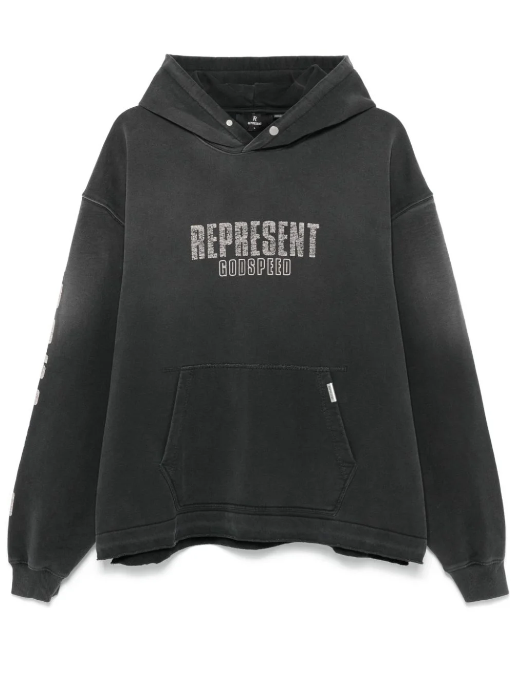 Godspeed hoodie Highlights - Dark grey - Cotton - Jersey texture - Distressed effect - Slouchy hood - Drop shoulder - Long sleeves with ribbed cuffs - Logo print to the front - Front pouch pocket - Logo plaque to the pocket - Short side slits - Graphic print to the rear - Slogan print to the rear - French terry lining - Raw-cut hem Imported Composition Cotton 100% SIZE & FIT Model measurements Height 6 ft 1 in(1.85 m) Bust/Chest 35.82 in(91 cm) Hips 37.79 in(96 cm) Waist 29.13 in(74 cm) FittingInformation Designed to be unstructured, offering a loose fit throughout Made from a midweight non-stretch fabric, this piece offers minimal elasticity when worn