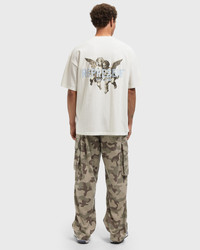 Made from 100% cotton with a soft carbon finish, this 220GSM Legacy Cherubs T-shirt from Represent epitomizes comfort and quality. The oversized fit, double-stitched hems, and ribbed collar ensure long-lasting style. High-quality screen printing with cherub graphics on the chest and back, as well as the signature metal bar at the hem, round off the piece. - Oversized fit - Ribbed collar - Double stitching at hem and cuffs - Signature metal bar at hem - High-quality screen-printed graphics Article number: MLM100369-72 Gender: men Color: FLAT WHITE Material: 100% Cotton