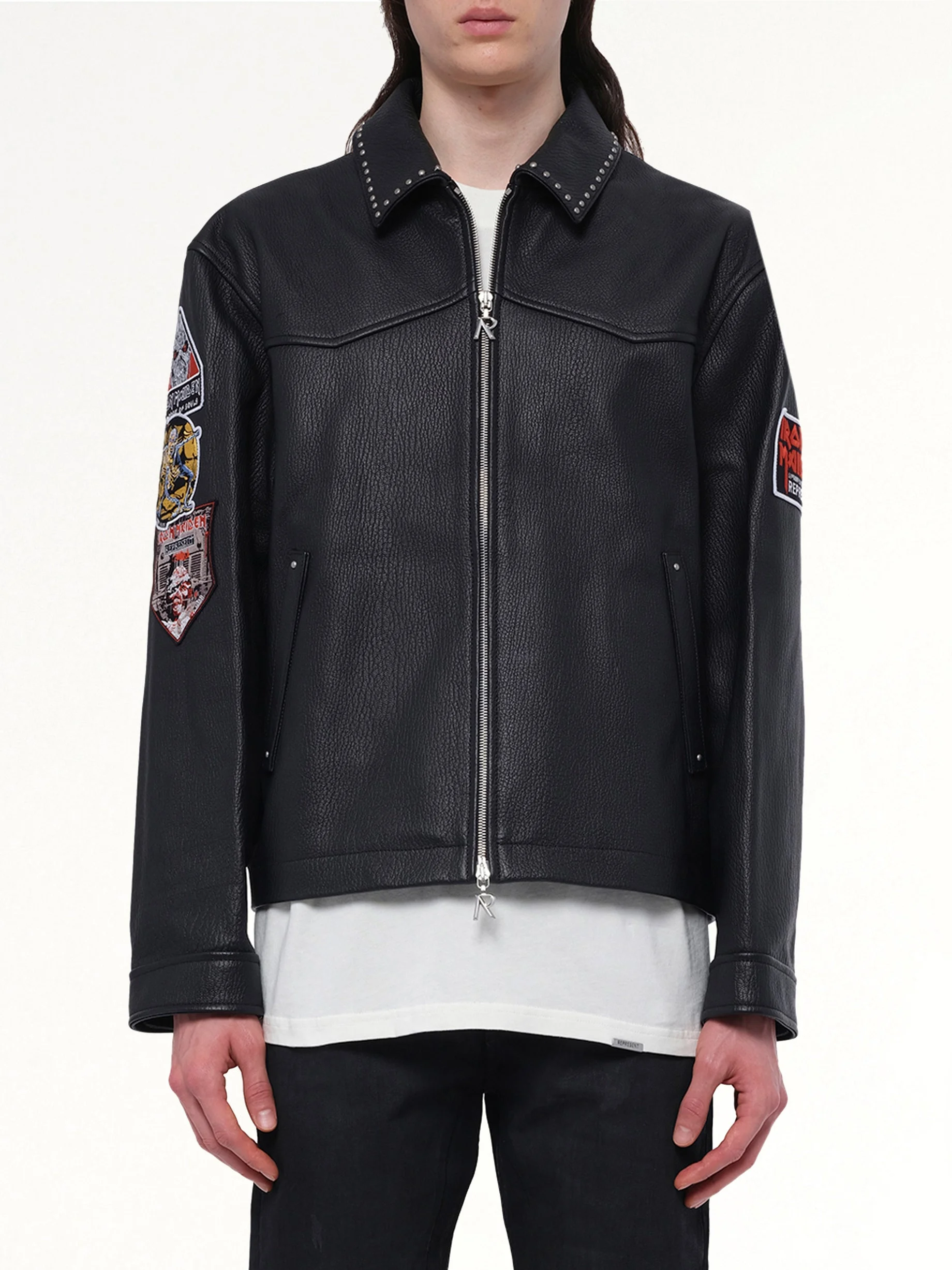 Iron Maiden Trooper Leather Jacket in Jet Black