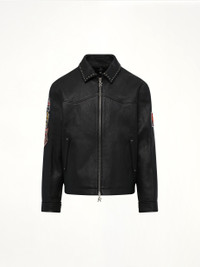 REPRESENT's Iron Maiden Trooper Leather Jacket in Jet Black is a bold statement piece inspired by the iconic band. This jacket combines classic rock aesthetics with modern design elements for a standout look. - Composition: 100% Silk - Features Iron Maiden's "The Trooper" artwork on the back. - Jet black leather finish for a sleek appearance. - Multiple zippered pockets for functionality and style. - Adjustable cuffs and waist for a customized fit. - Durable construction for long-lasting wear. - Made in - Model is 187 cm and wears size M SKU: MLM100576 01