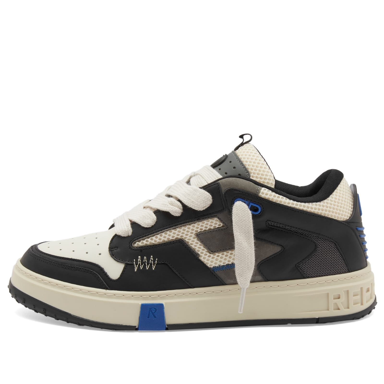 Referencing all the best bits from its wildly successful footwear catalogue, Represent introduce the Rmx Sneakers. With a low-profile silhouette and textures galore on the upper, these sporty court shoes are ready to make a statement in your collection. Thick, flat laces and embossed heel branding round off this fresh yet familiar pair. - Mesh, Leather & Suede Upper - Lace Closure - TPU Details - Branding Throughout - Rubber Sole