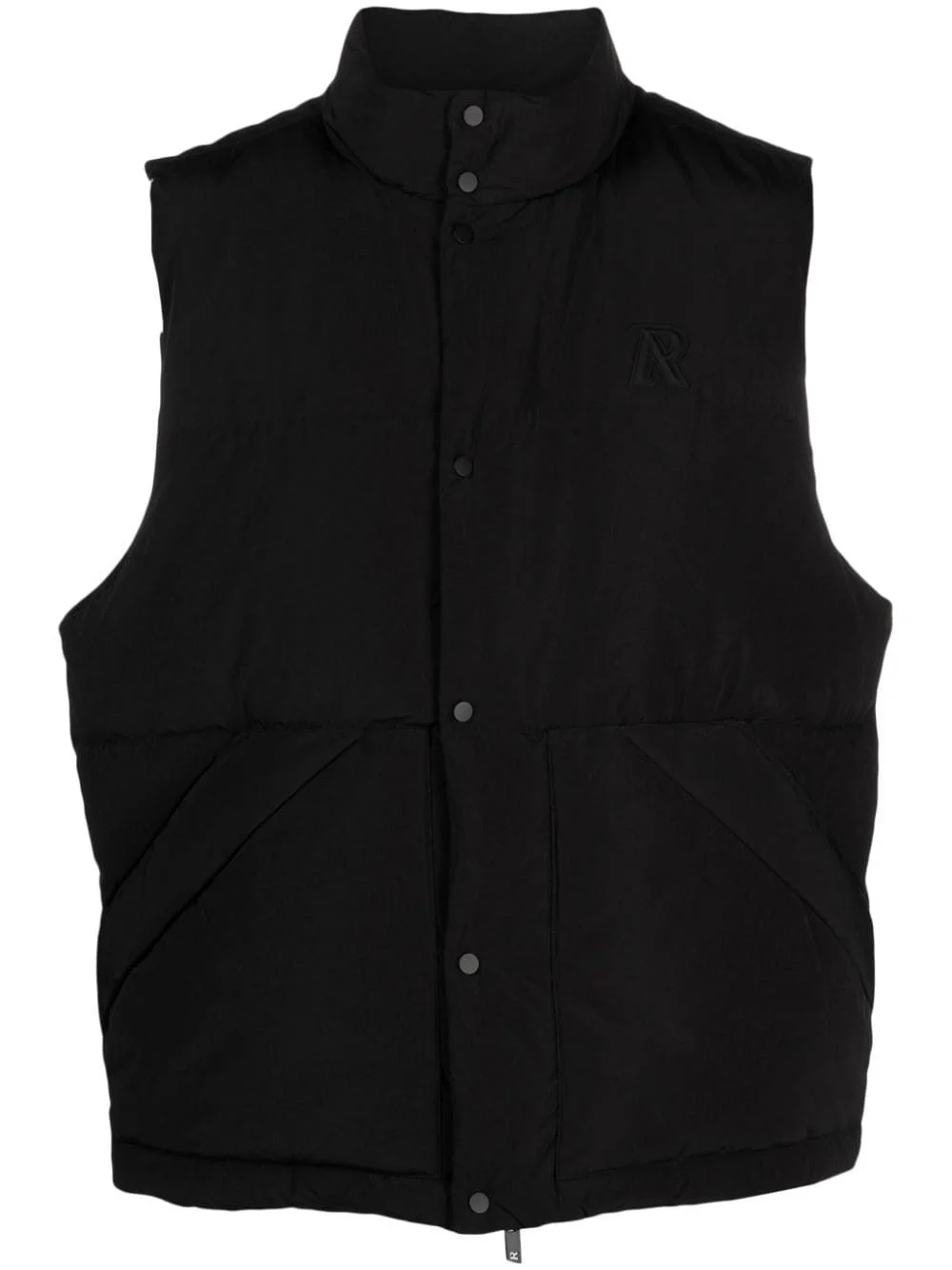 logo-applique quilted gilet Represent is known for creating sophisticated streetwear garments. This is continued on this funnel-neck quilted gilet which boasts feather-down insulation and is subtly finished with a rubber logo applique at the chest. Highlights - Black - Feather down - Quilted - Applique logo - Funnel neck - Front press-stud and zip fastening - Sleeveless - Two side flap pockets - Straight hem Imported Composition Lining: Feather Down 100%, Nylon 100% Outer: Polyester 82%, Nylon 18% SIZE & FIT Model measurements Height 6 ft 0 in(1.84 m) Bust/Chest 36.22 in(92 cm) Hips 35.43 in(90 cm) Waist 26.77 in(68 cm) Washing instructions Machine Wash