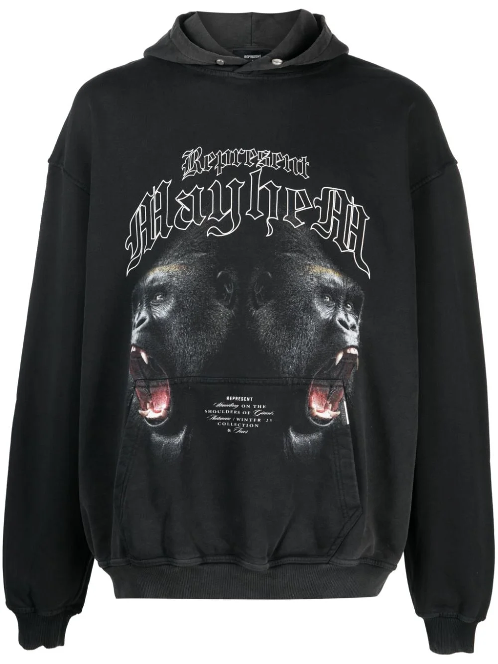 Mayhem graphic-print hoodie Manchester-based streetwear brand Represent presents the Mayhem hoodie, cut from soft stretch cotton and defined by the bold graphic print at the front. Highlights - Black - Stretch-cotton - Jersey texture - Graphic print to the front - Classic hood - Long sleeves - Front pouch pocket - Straight hem Imported Composition Cotton 95%, Elastane 5% SIZE & FIT Model measurements Height 6 ft 0 in(1.84 m) Bust/Chest 34.64 in(88 cm) Hips 35.03 in(89 cm) Waist 27.95 in(71 cm) Washing instructions Machine Wash