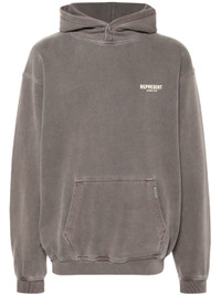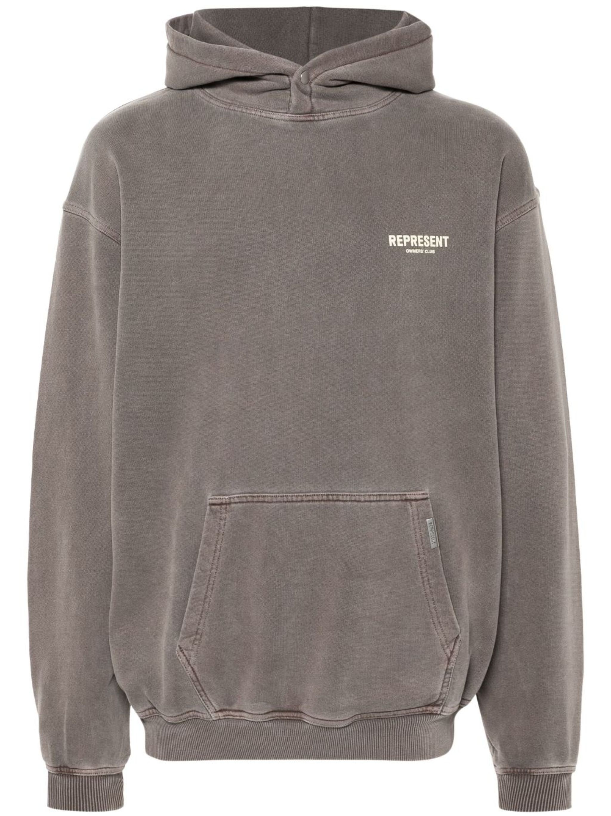 taupe grey cotton jersey texture classic hood logo print at the chest drop shoulder long sleeves ribbed cuffs and hem front pouch pocket logo print to the rear slogan print to the rear French terry lining straight hem Size & Fit Model Measurements: Height: 1.85 m Bust/Chest: 93.0 cm Hips: 96.0 cm Waist: 73.0 cm Model wears size M Fabric and Care Designer Style ID: OCM41113165 Designer Colour: FOG Composition: Cotton 100% Washing instructions: Machine Wash Made in Portugal